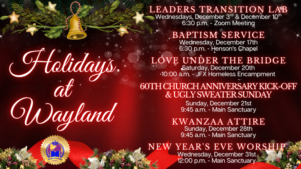Wayland’s history dates back to 1908 in Baltimore, MD., when members of Israel Baptist Church began holding prayer meetings at each other’s homes after the death of their Pastor. Led by Deacon Robert Thrower, the prayer band grew and plans were made to organize a church. It would be named Wayland after Mrs. Thrower’s home church in Virginia.